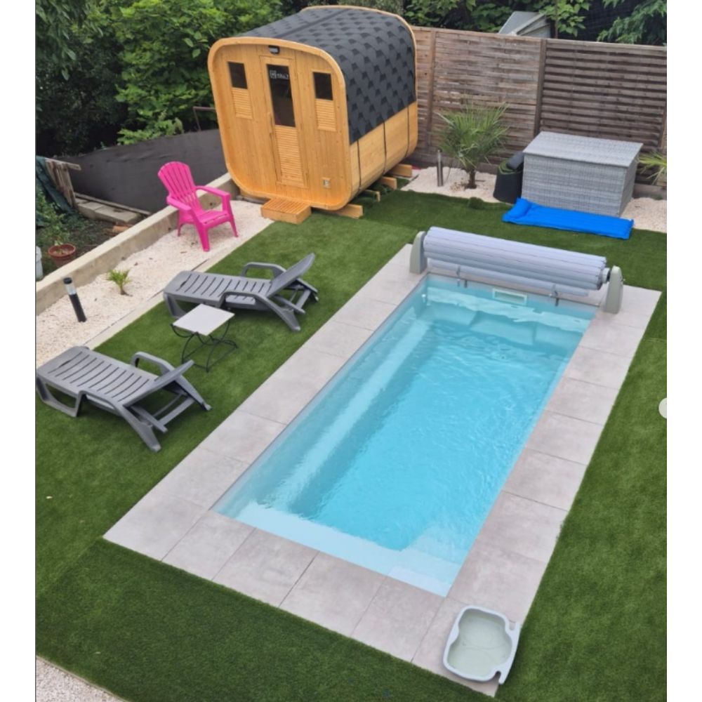 Nova Saunaen er designet til 6 personer, hvor du kan nyde en ægte finsk oplevelse på en todelt bænk. Den øverste bænk er tænkt for fuldstændig afslapning med et sammenklappeligt ryglæn og en behagelig nakkestøtte.