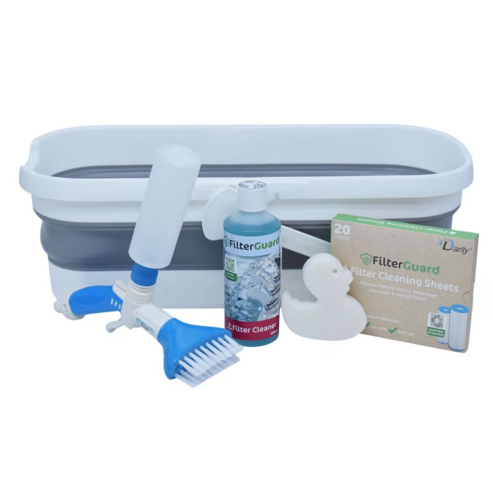 Darlly FilterGuard-systemet bruger en 4-trins metode til at dybderense dine filtre og forlænge filterets levetid. Systemet er designet til at hjælpe dig med at passe på dine spabadsfiltre på en effektiv og mere miljøvenlig måde. Brug af mindre emballage, færre kemikalier og mere genanvendelige materialer giver dig en mere sikker måde at rengøre dine filtre på.