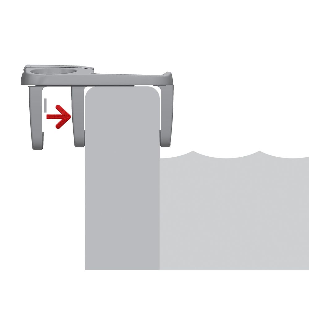 • Sikkert og alsidigt bakkebord med to kopholdere, skridsikker (rillet) hylde og en speciel vandtæt sektion til opbevaring af ting som mobiltelefoner