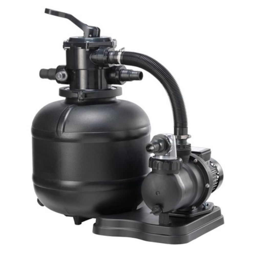 Filteranlægget er udstyret med en kraftig, selvsugende pumpe med forfilter, som beskytter pumpen mod blade og større partikler. Den store filtertank er forsynet med en overskuelig 7-vejs topventil og manometer, så det er nemt at skifte mellem filtrering, returskyl og skylning.
