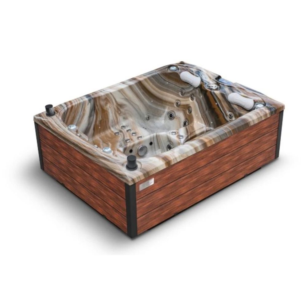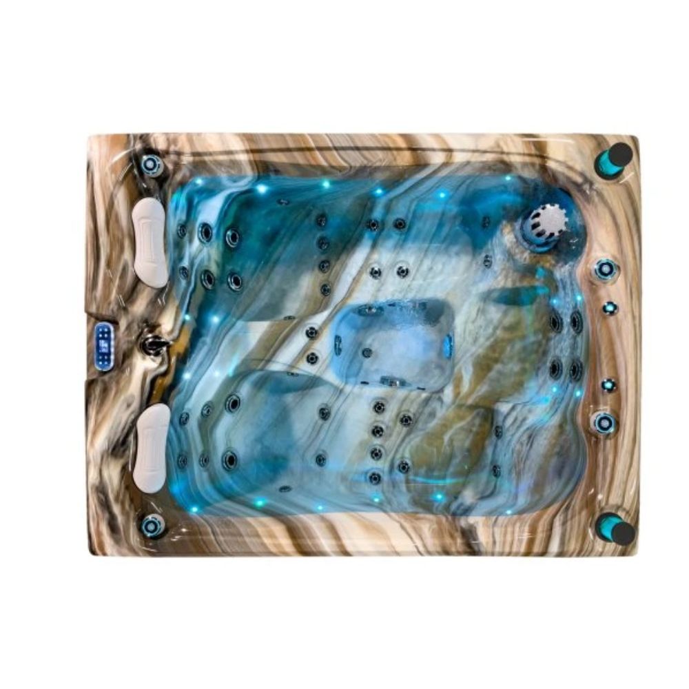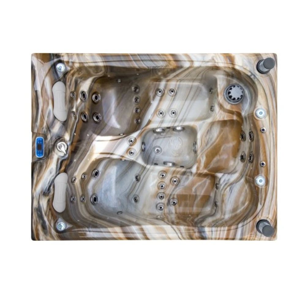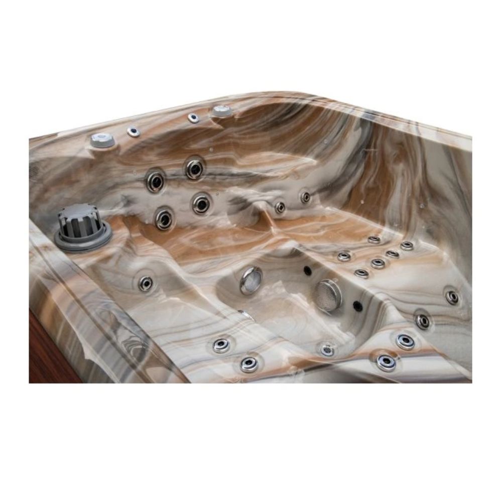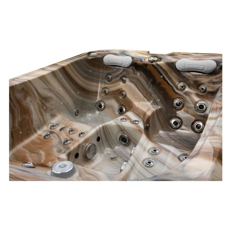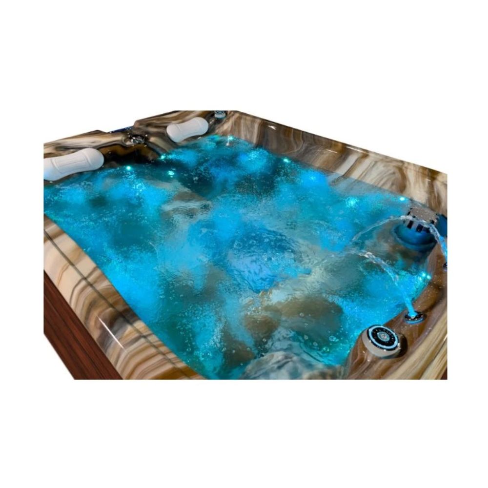 Den stilfulde skal i hvid marmor tilføjer et strejf af luksus og passer smukt ind i både moderne og naturlige udendørsområder. Spabadet er udstyret med LED-belysning, et intuitivt Balboa-kontrolpanel , et isolerende termisk låg og et effektivt vandfiltreringssystem .