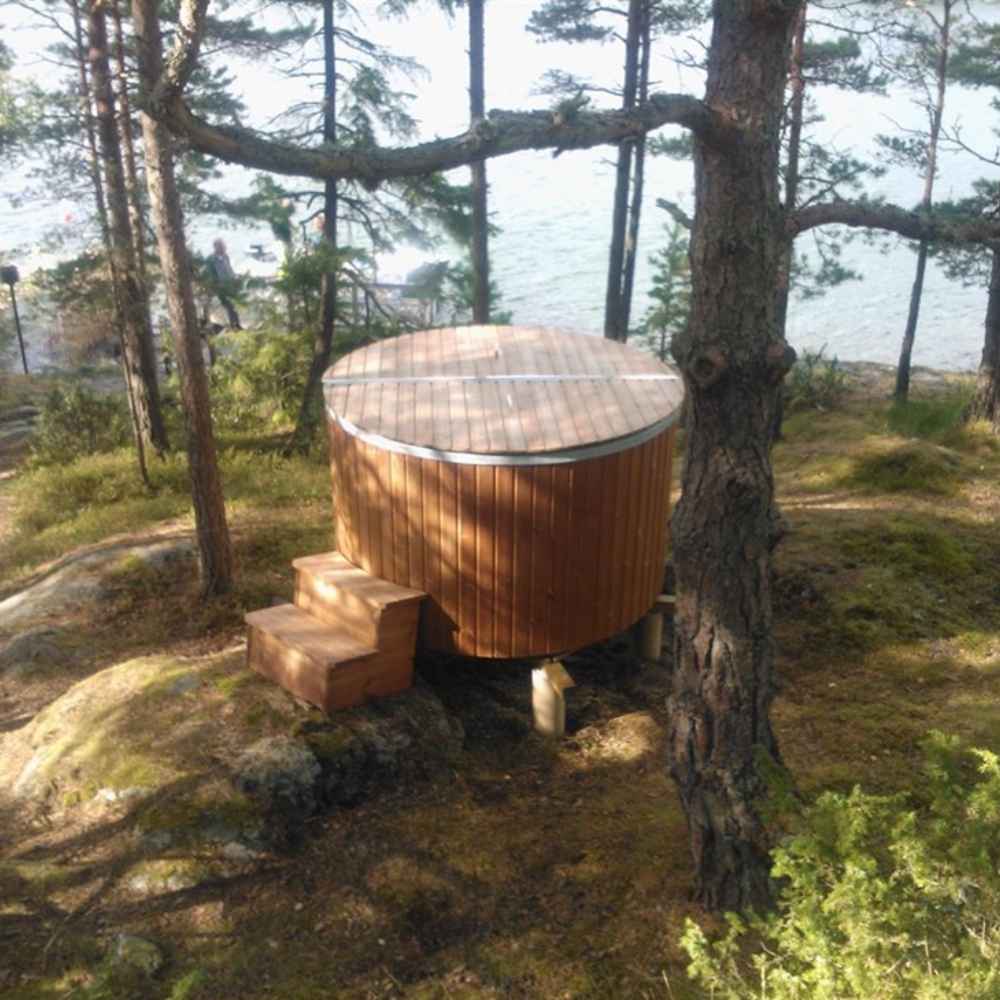 Flot Citytub med diameter på 180 cm. Vildmarksbadet kommer med en højtydende gasovn på 24 kW, som ikke giver røg.