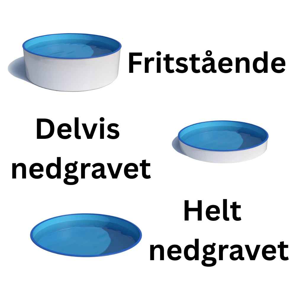 Ved nedgravning af poolen skal den have en støttevæg i tørcement, dvs. der skal fyldes sand/fint grus og tørbeton i åbningen omkring poolen(20 cm bred).